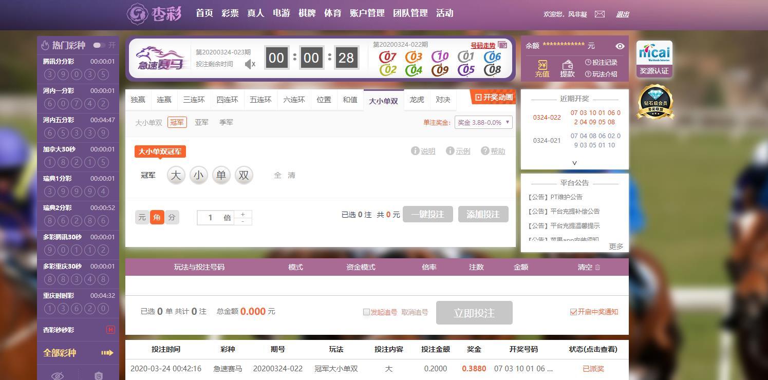 3-24杏彩急速赛马运气挺不错