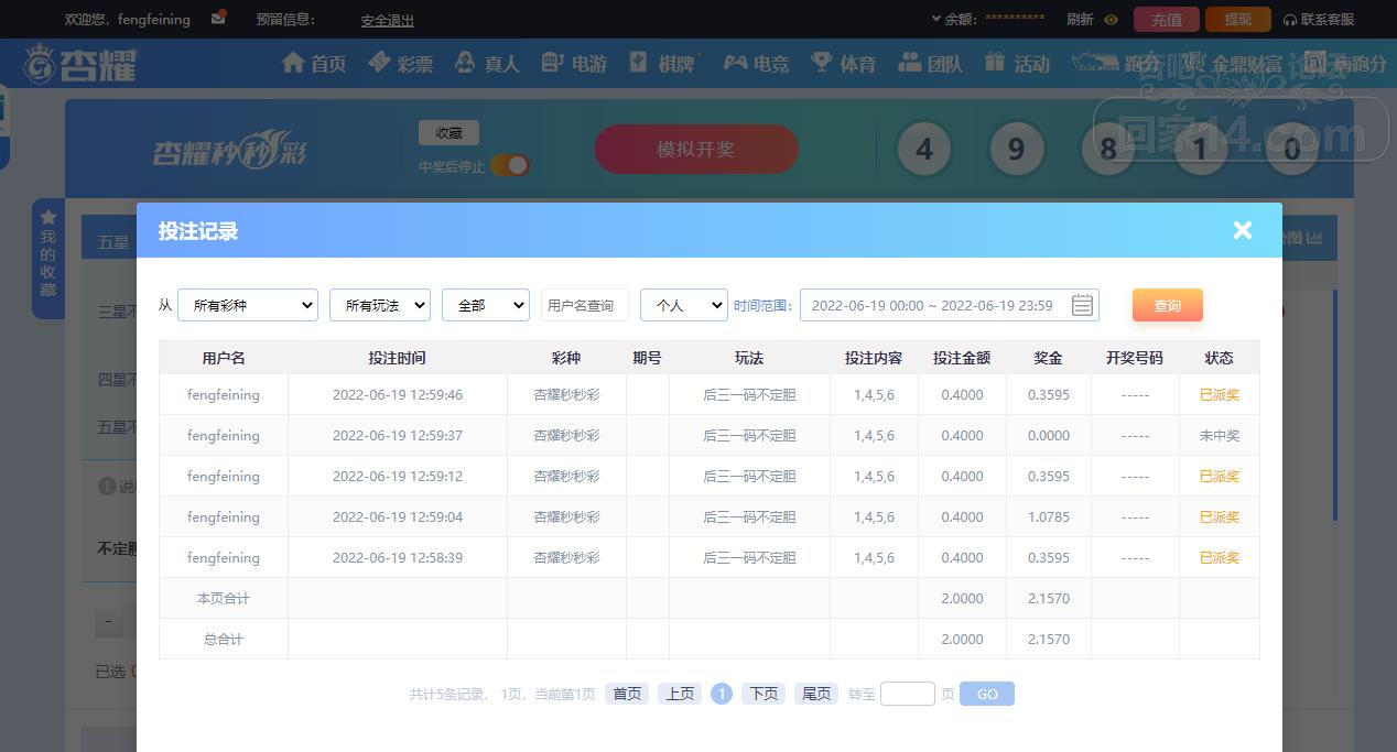 6-19杏耀秒秒彩运气挺不错