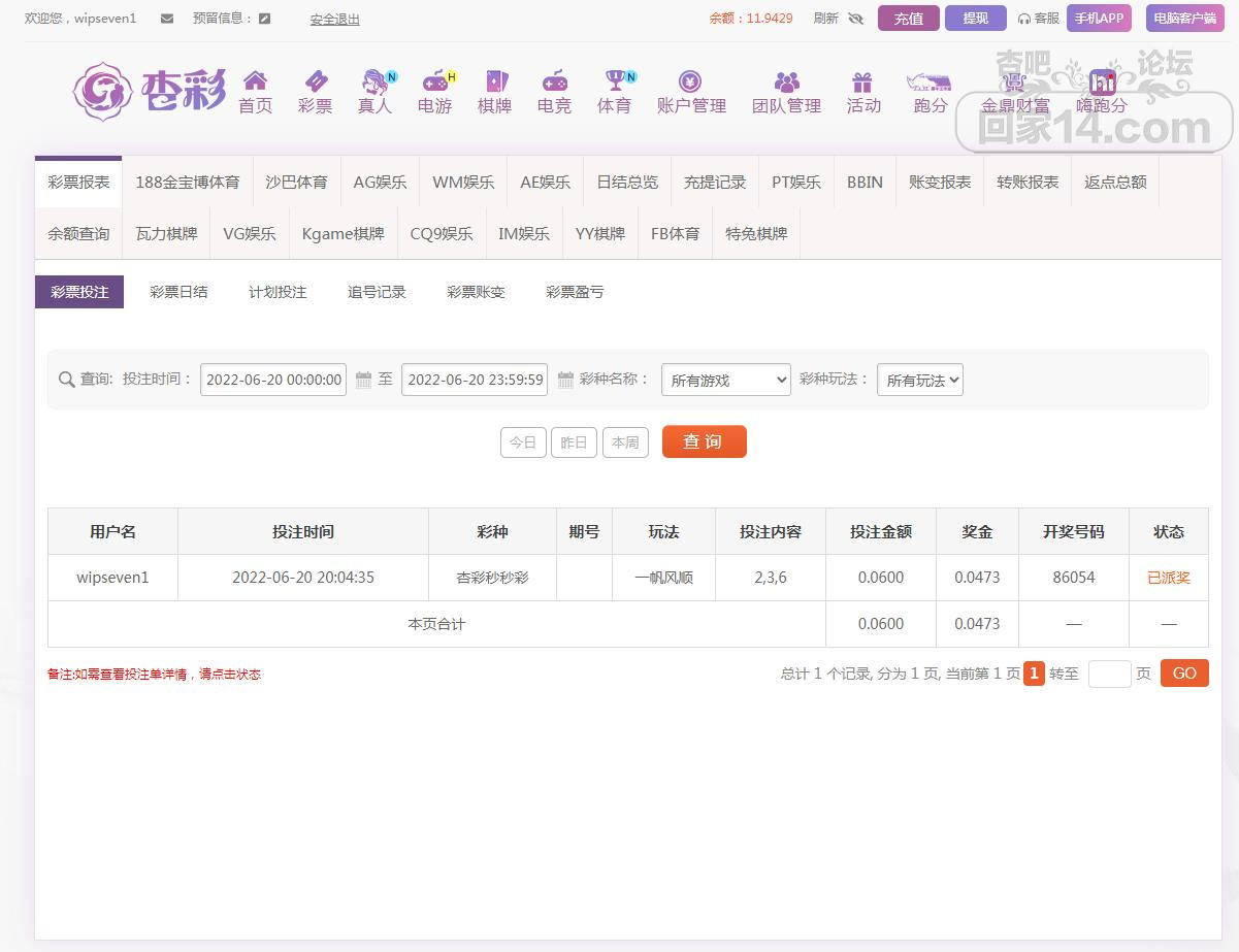 杏彩下注快频彩游戏赢单