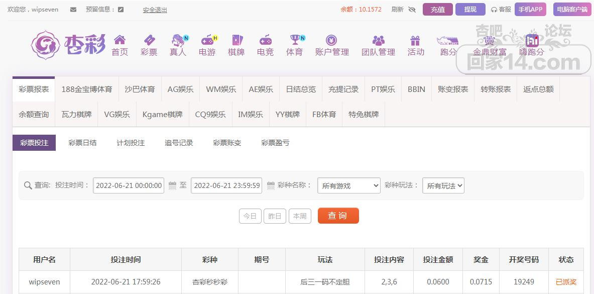 杏彩下注快频彩游戏赢单