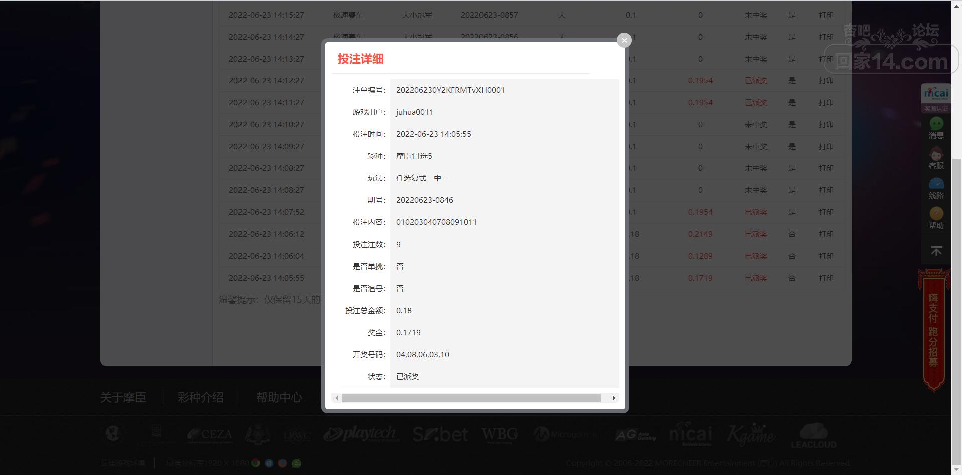 6.23摩臣11选5