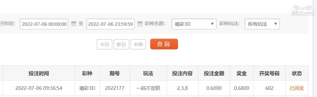 福彩3D隔几天中了