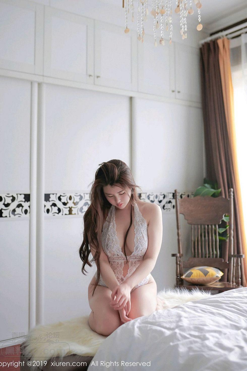 [美腿翘臀] 嫩模娜露Selena白色蕾丝缕空情趣内衣秀豪乳喷xue诱惑写真【39P】 |