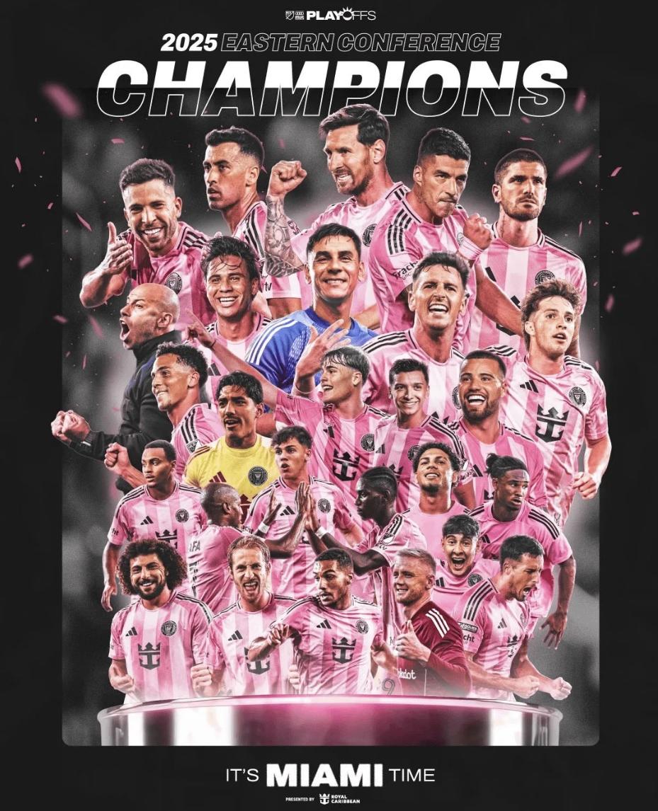 队史首夺东部冠军&进总决赛,迈阿密国际官方发海报庆祝