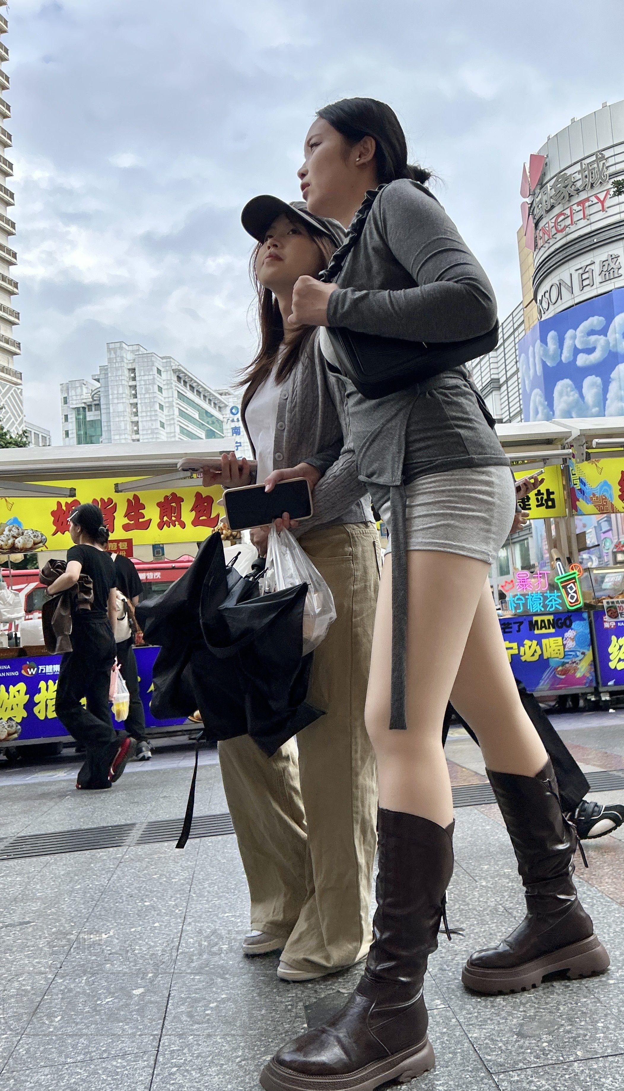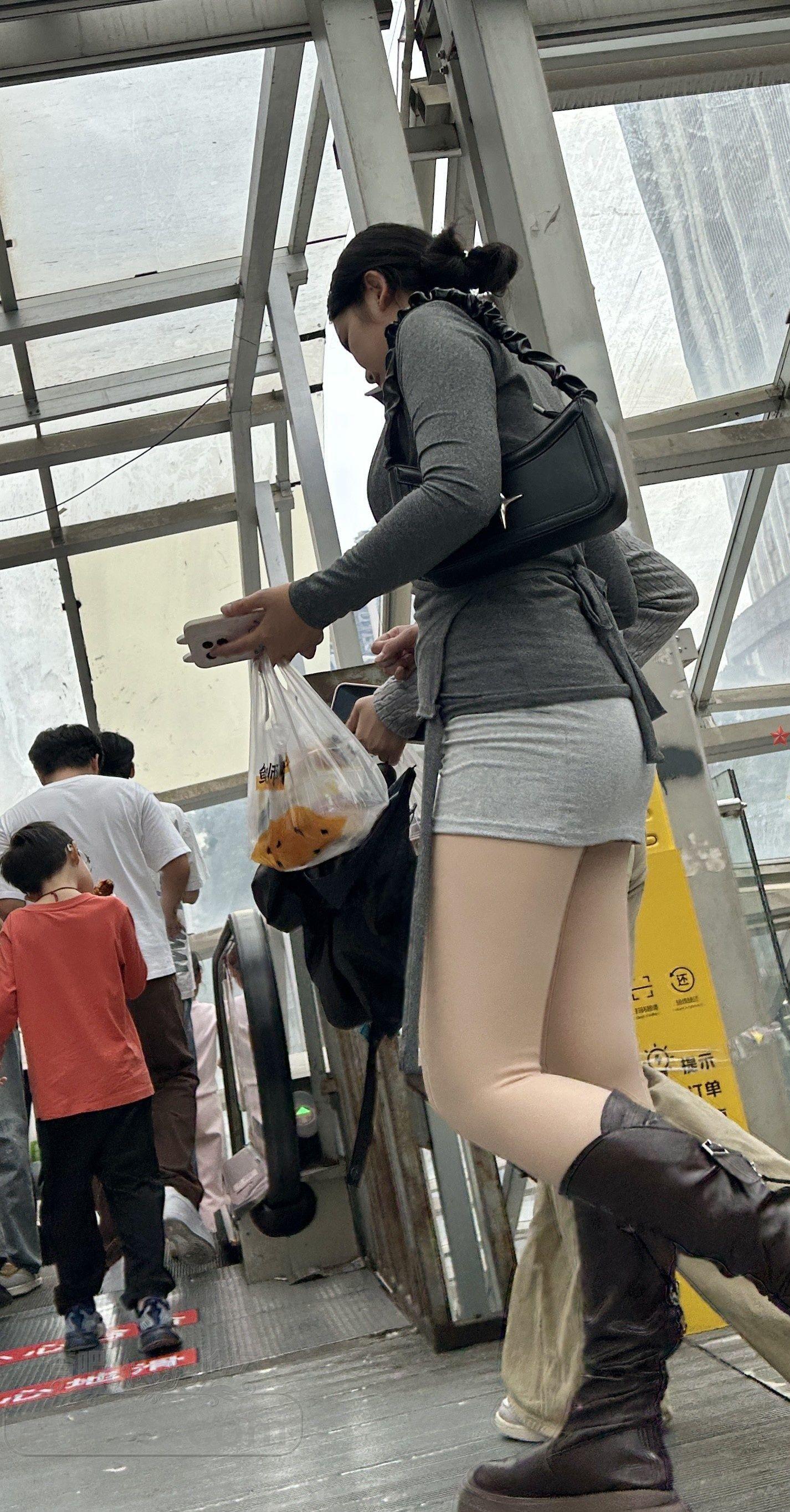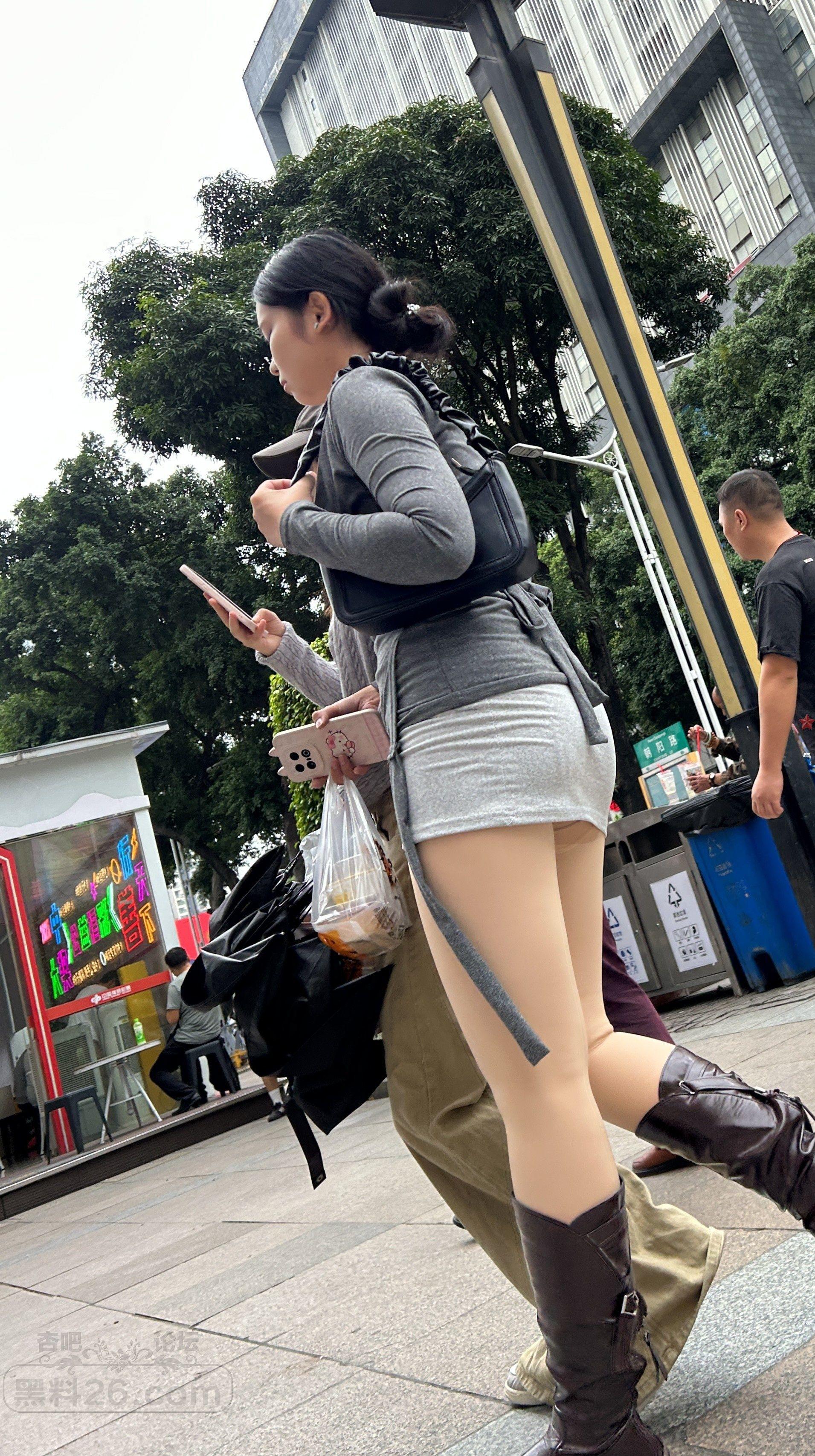 灰色紧身上衣包臀裙长靴美女浑圆大腿销魂【10P】