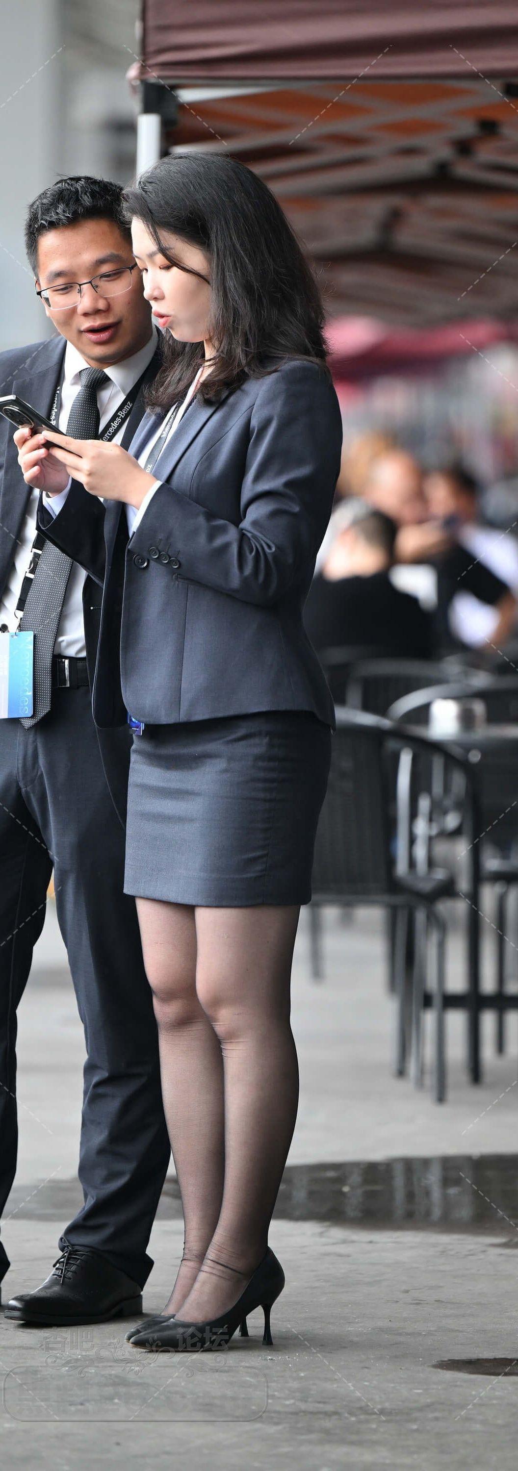 深色制服短裙美女销售员黑丝高跟和领导汇报工作【10P】