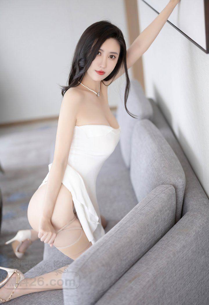 长发成熟美女高级酒店白色抹胸连衣短裙肉丝美腿馋人
