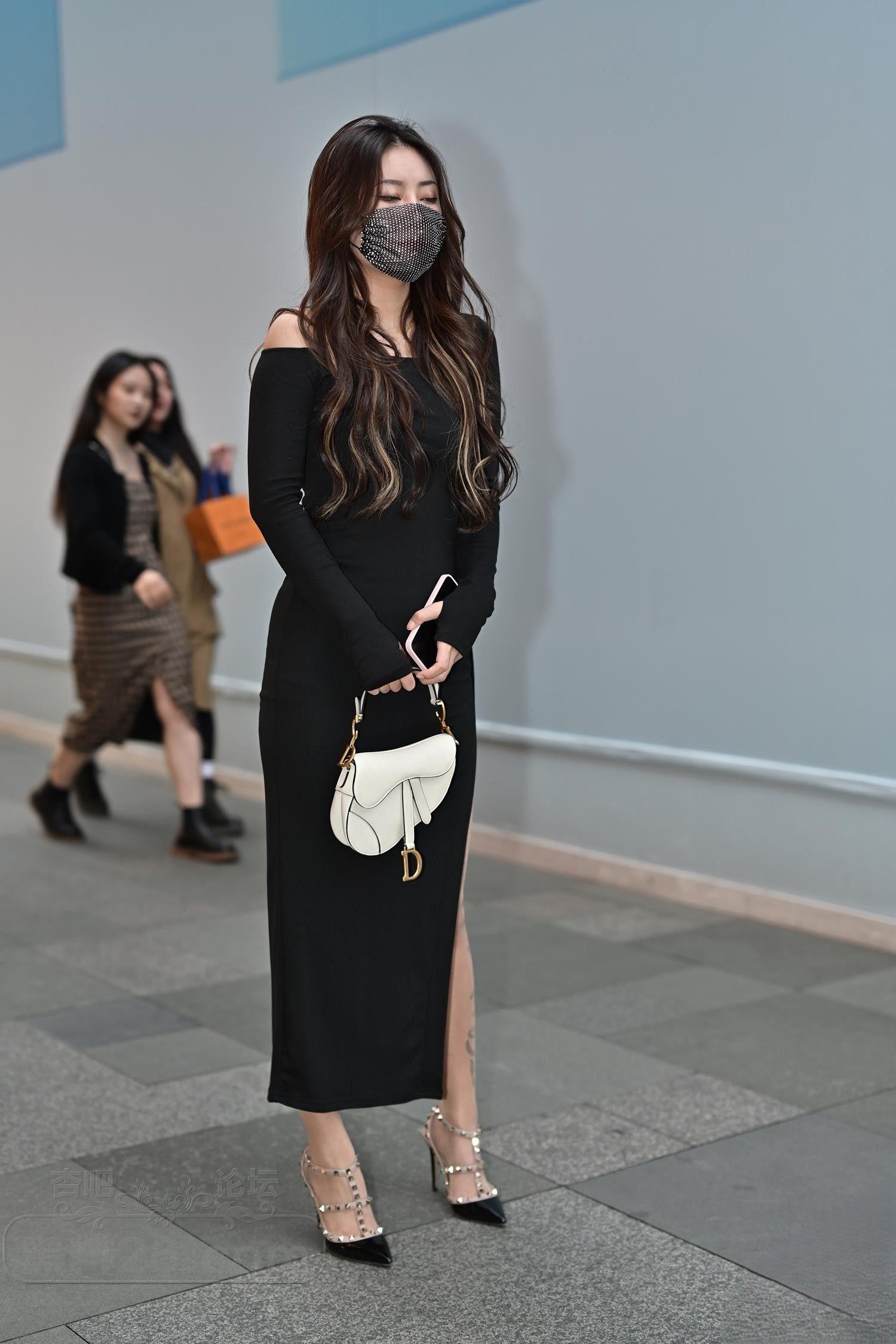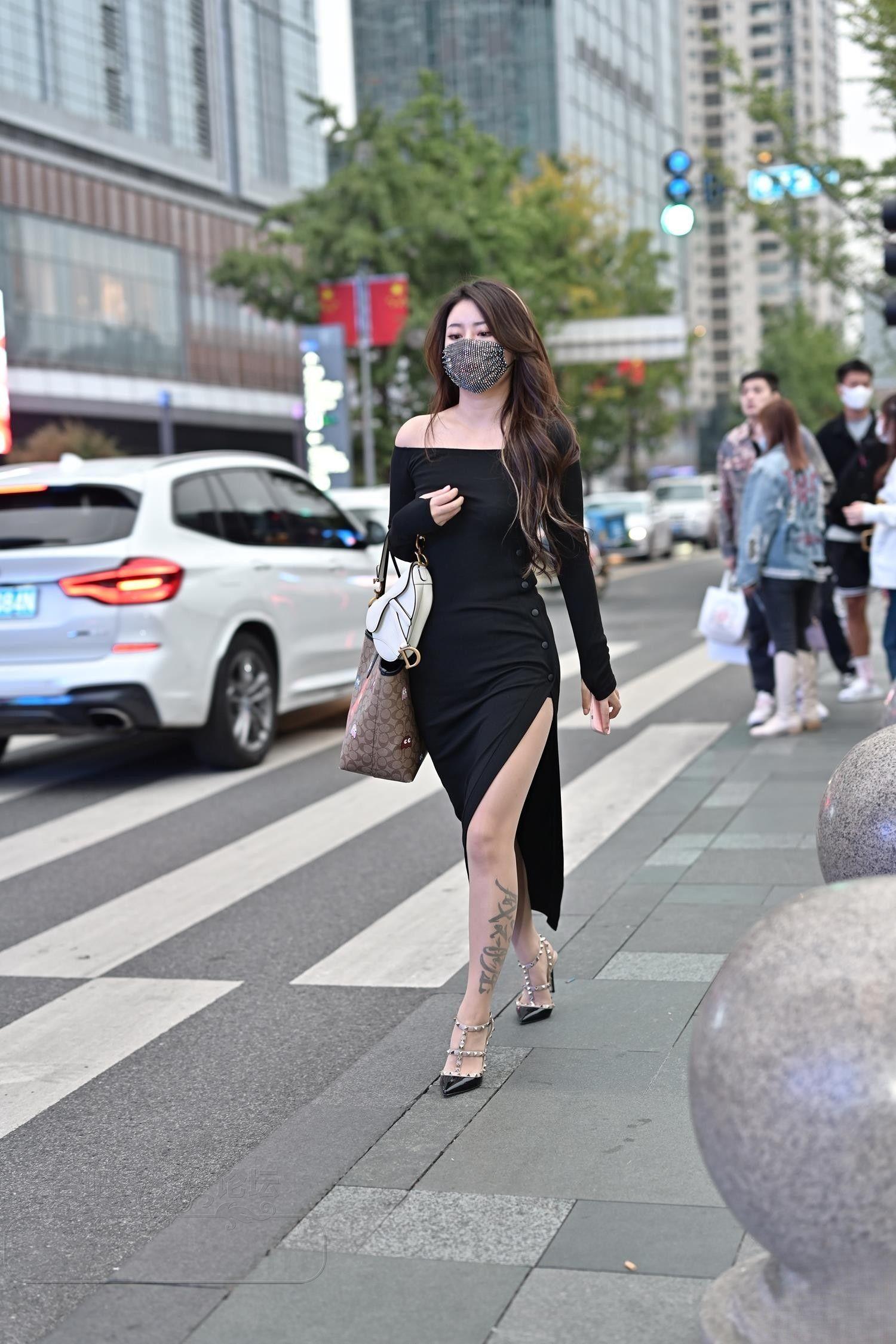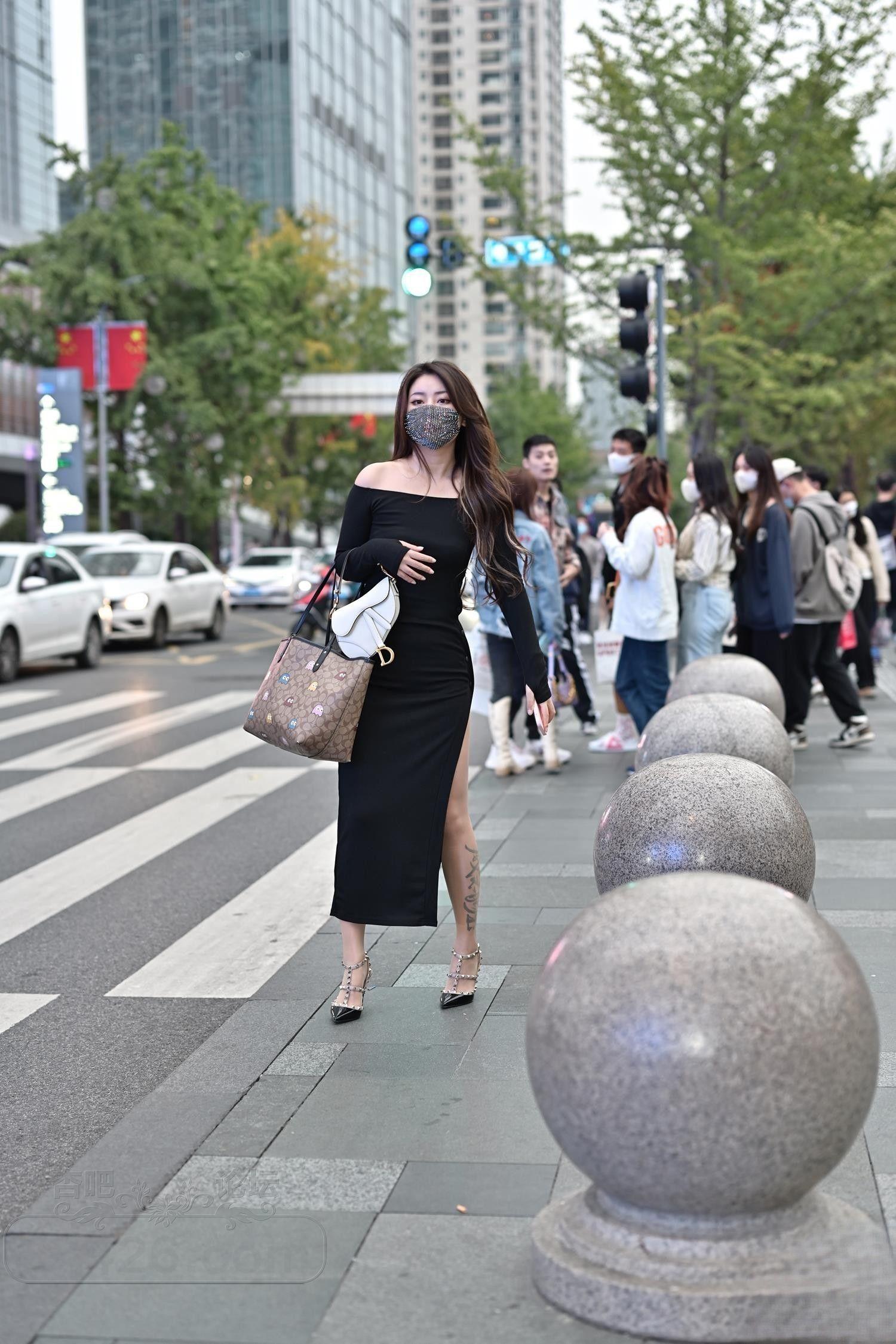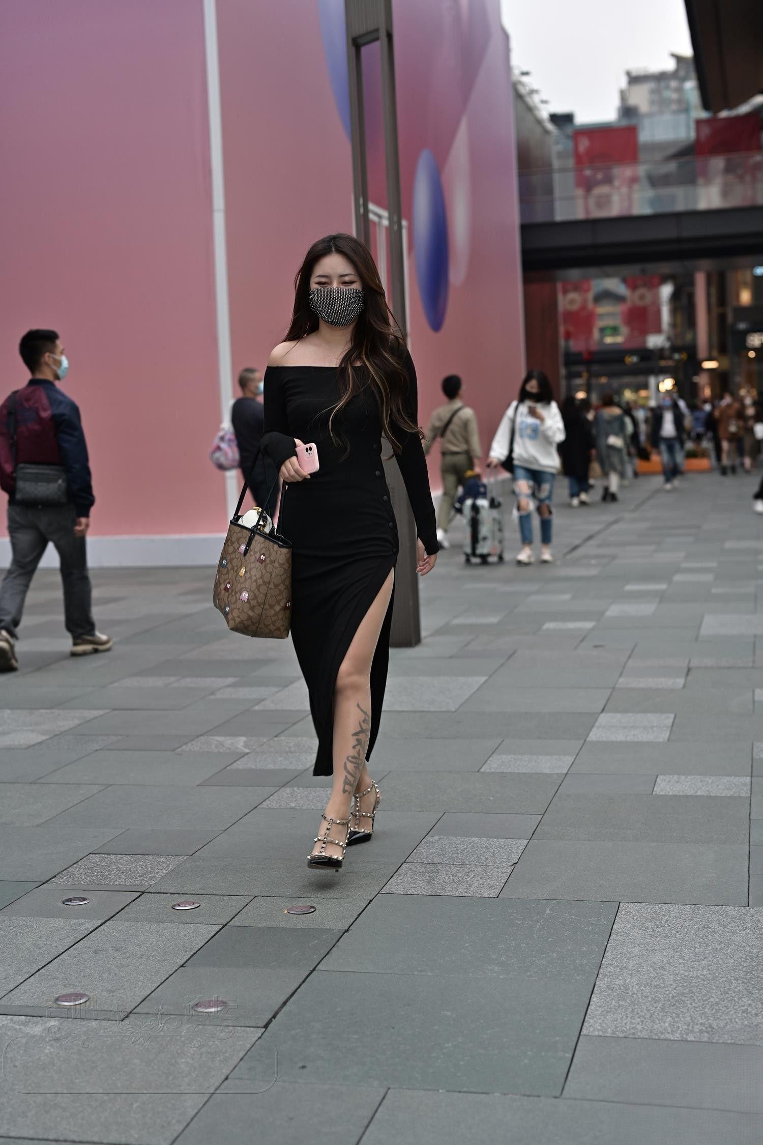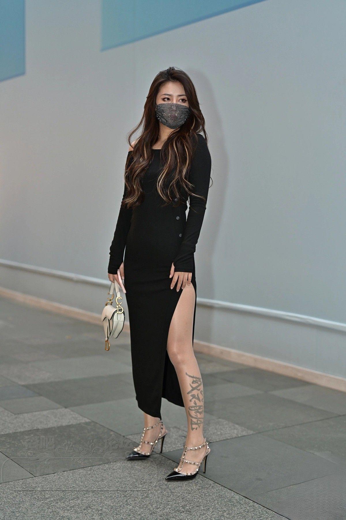 [街拍] 身材高挑黑色开衩裙大长腿美女戴口罩神秘感十足【20P】 |