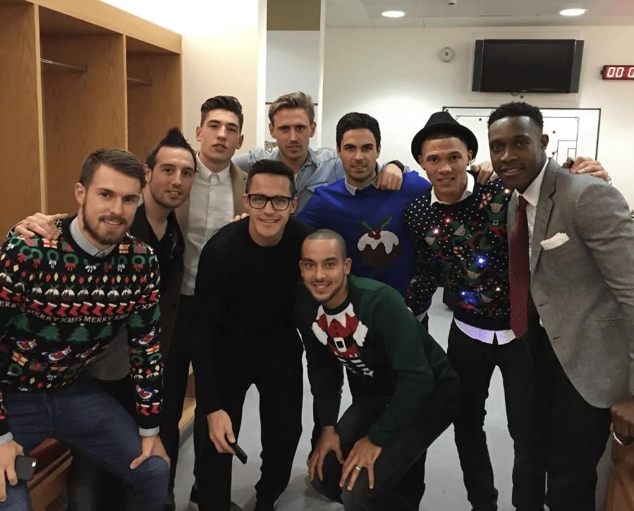 [|足球快报] 沃尔科特社媒晒旧日枪手圣诞节更衣室合影:圣诞快乐 |