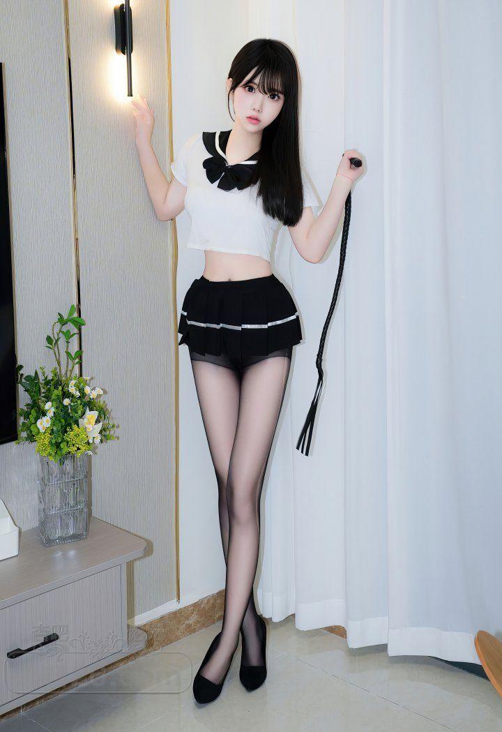 长发清纯少女沐言白色短袖黑色短裙黑丝美腿销魂【22P】