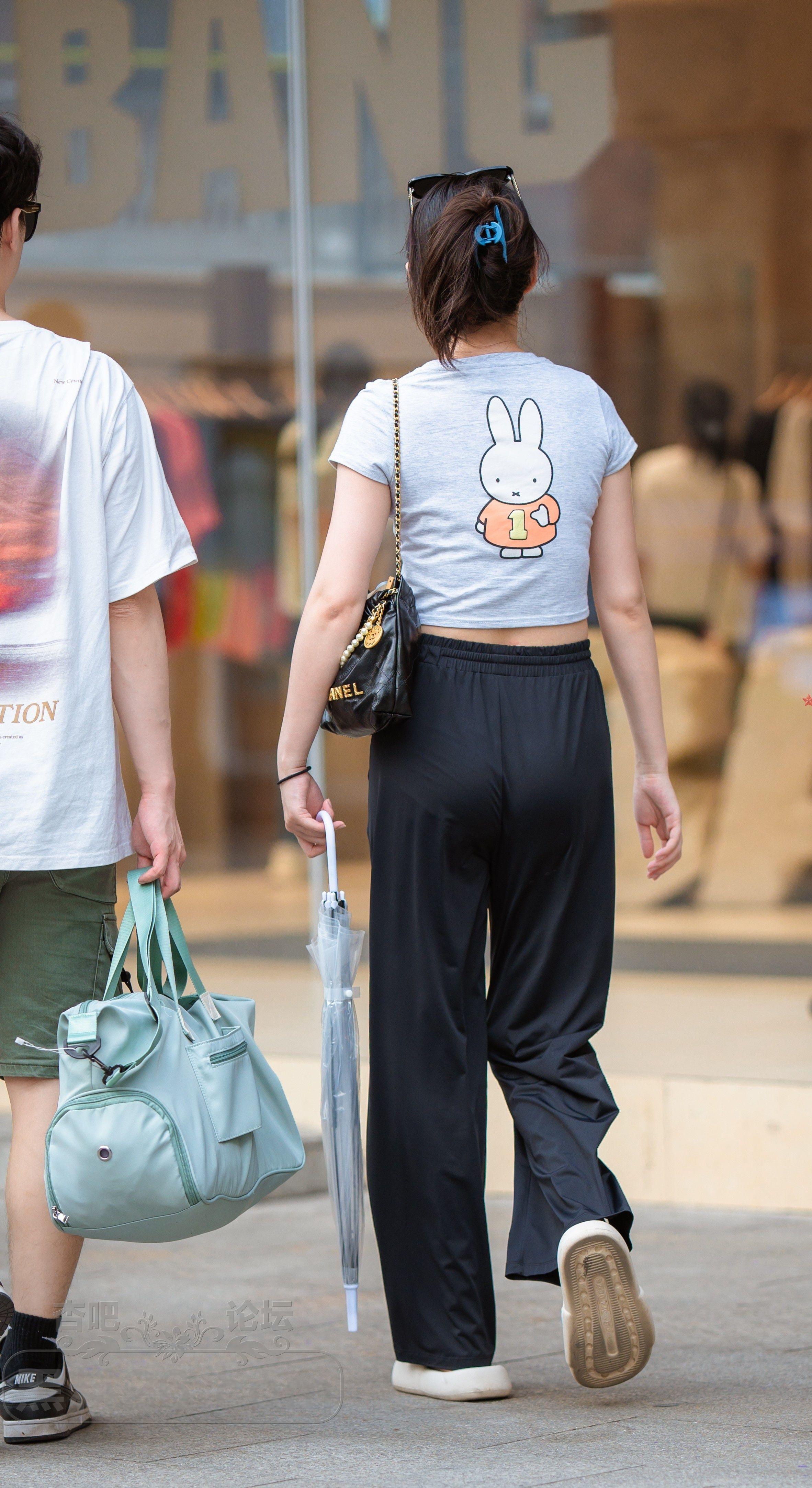 浅蓝色短袖深蓝休闲长裤美女夏日路过【10P】