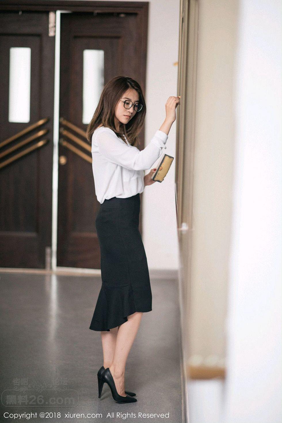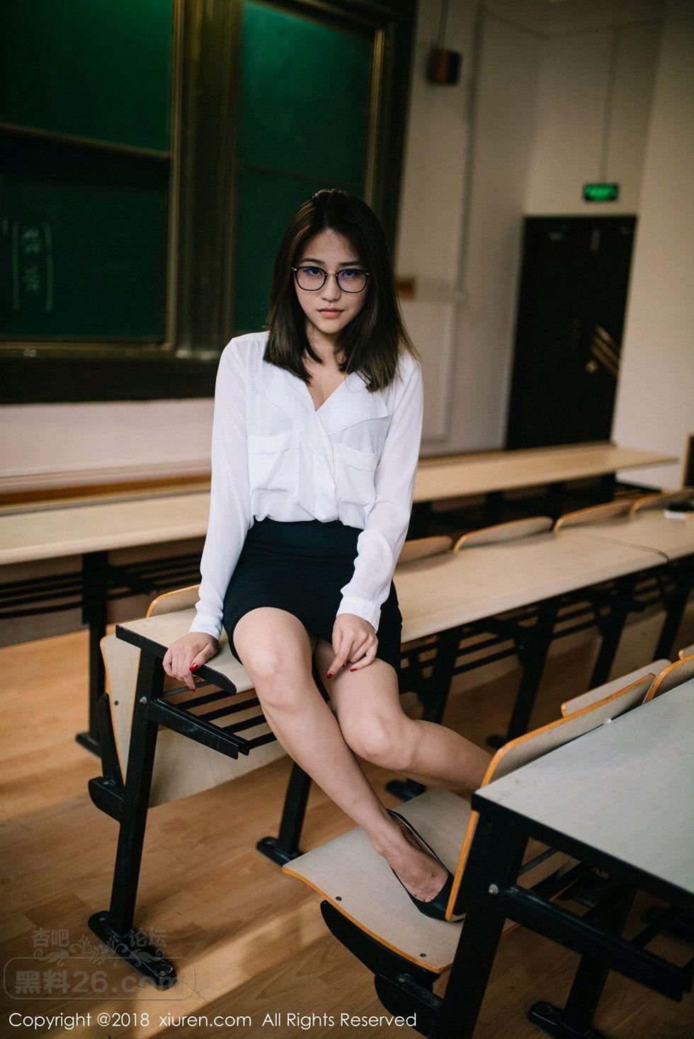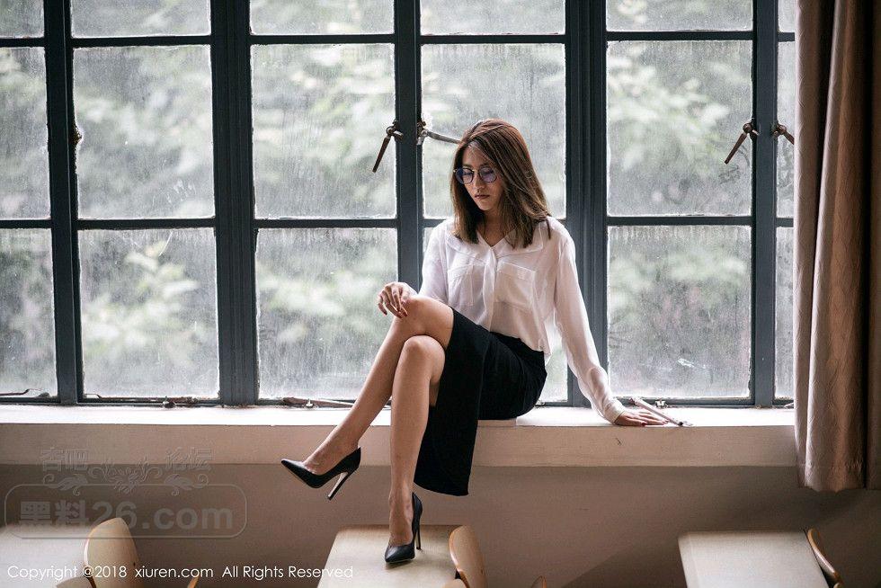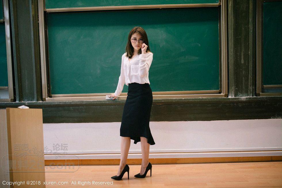 [美腿翘臀] 女神许诺Sabrina性感教师制服白衬衣配黑短裙秀美腿写真【33P】 |