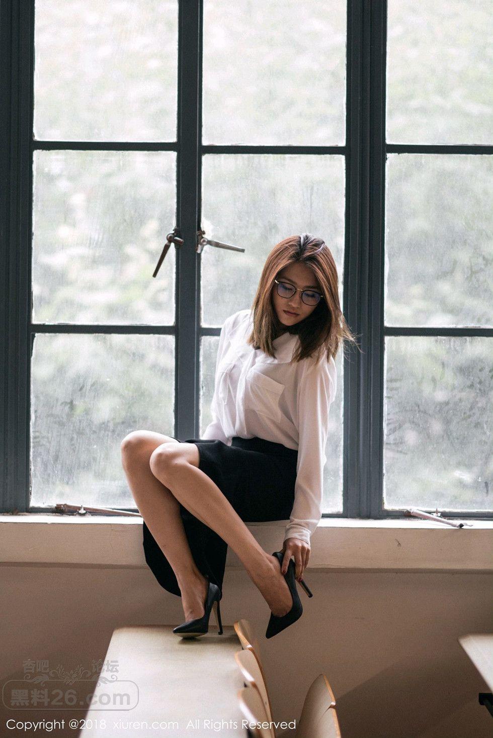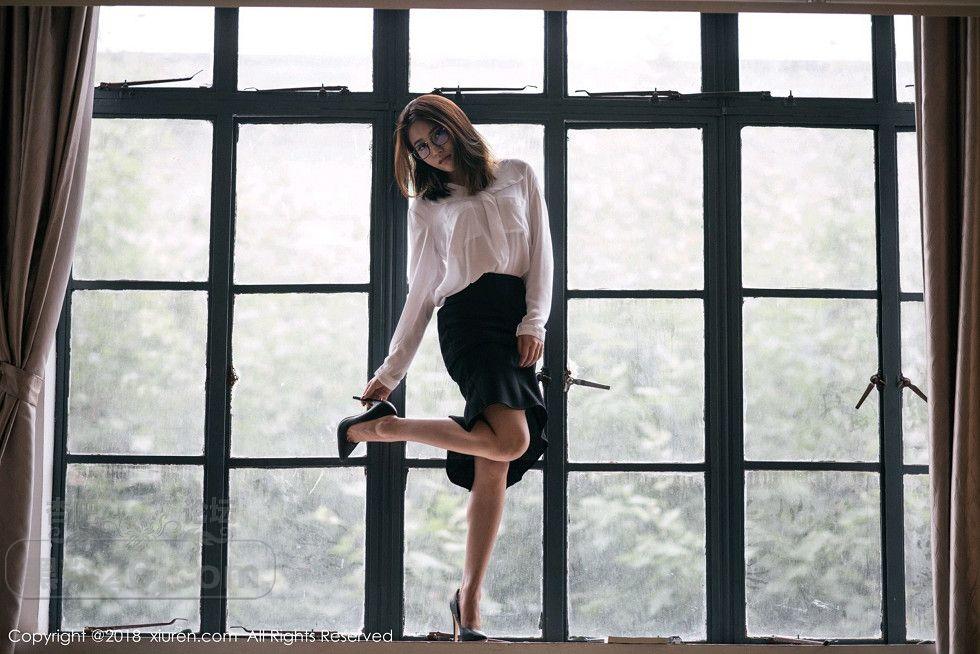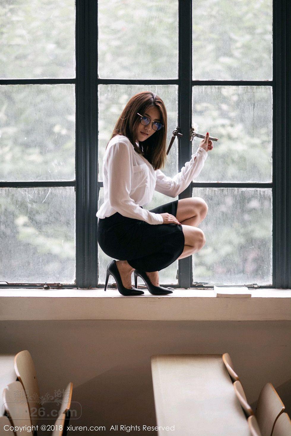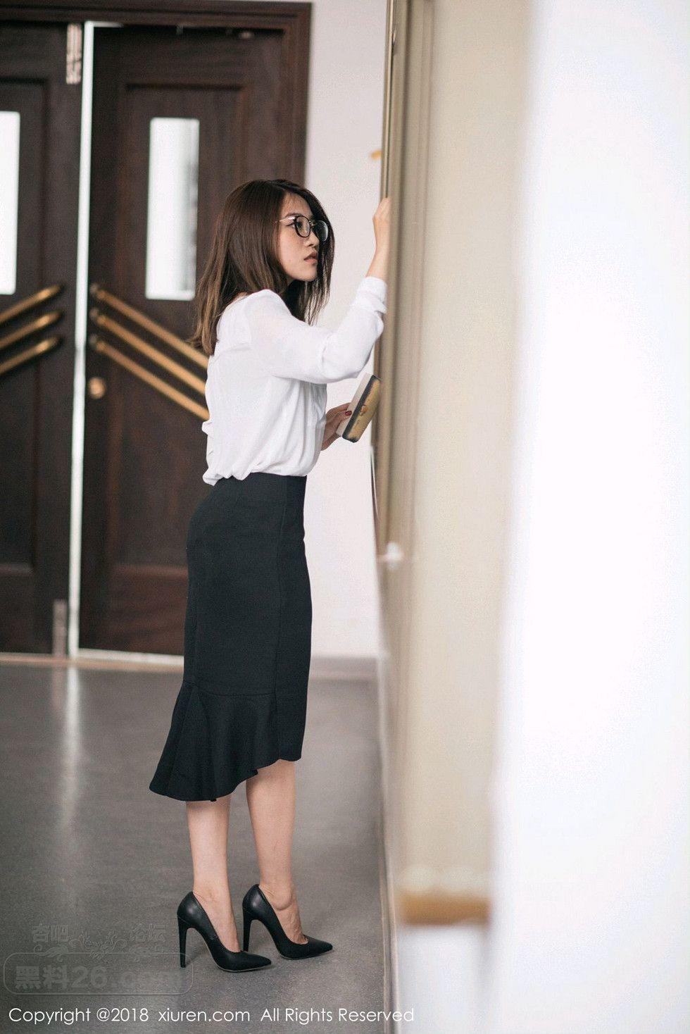 [美腿翘臀] 女神许诺Sabrina性感教师制服白衬衣配黑短裙秀美腿写真【33P】 |