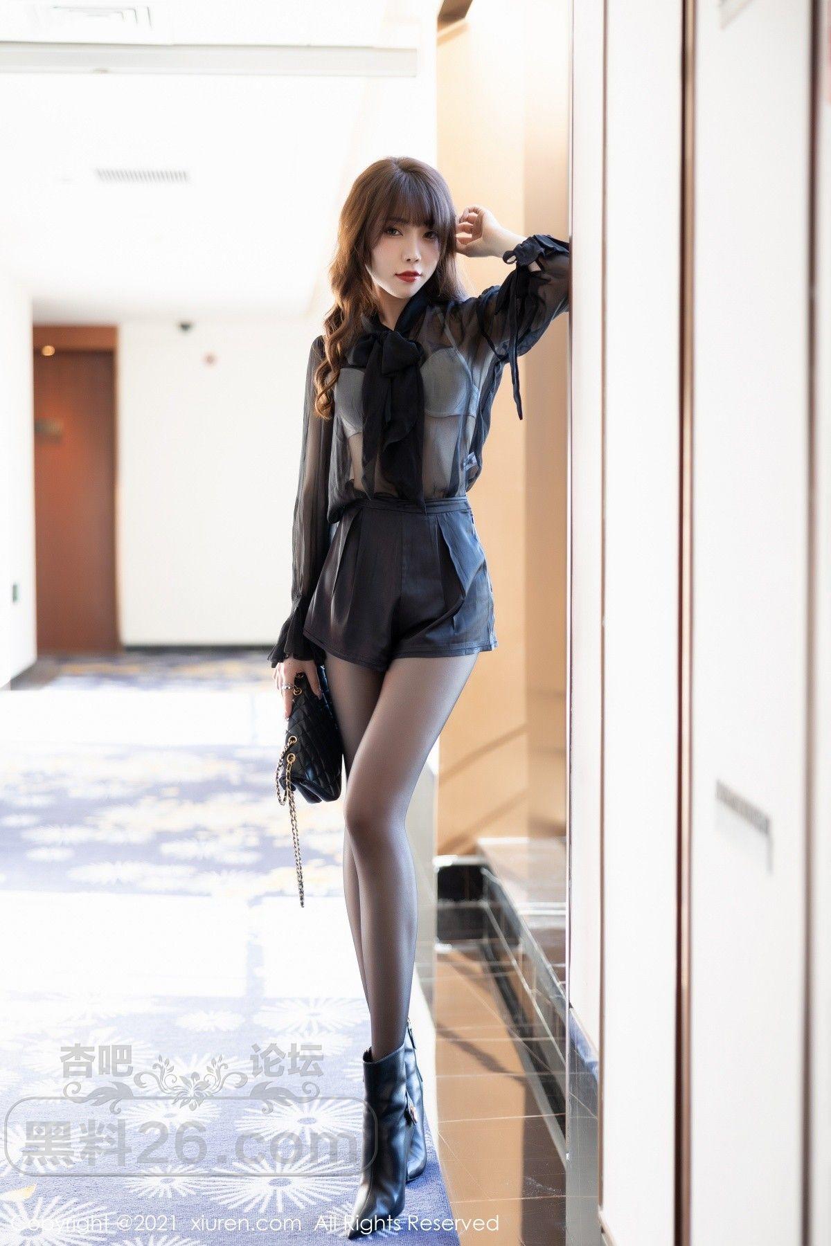 [美腿翘臀] 女神芝芝Booty深圳旅拍魅惑黑色服饰配黑丝裤袜秀翘臀诱惑写真【50P】 |