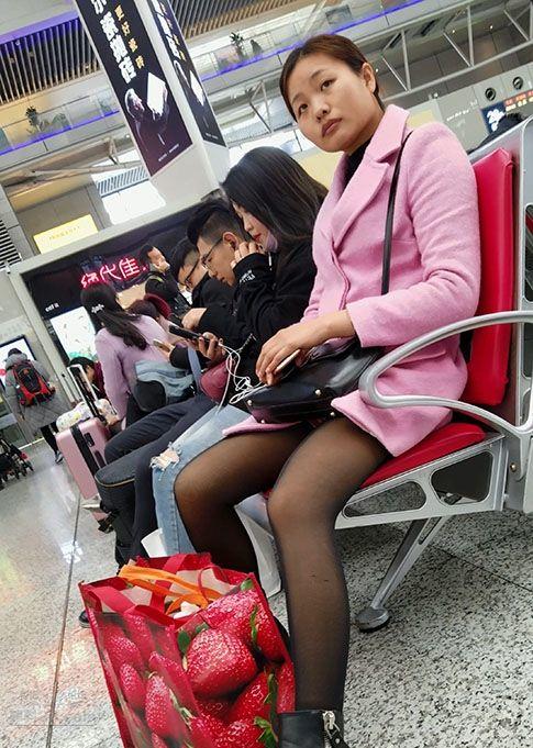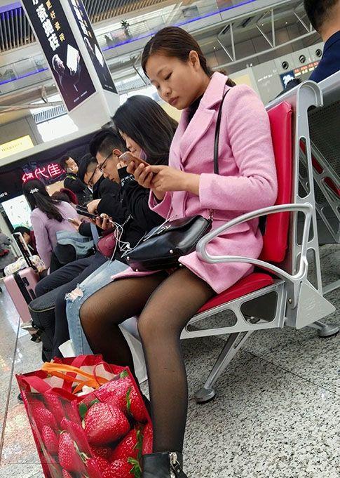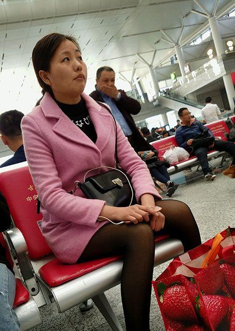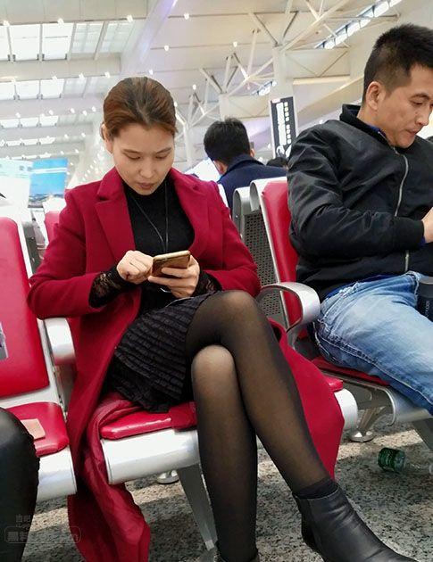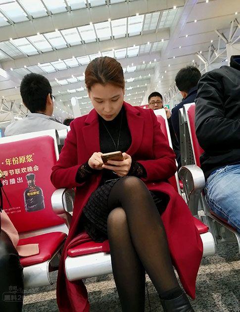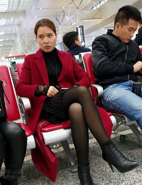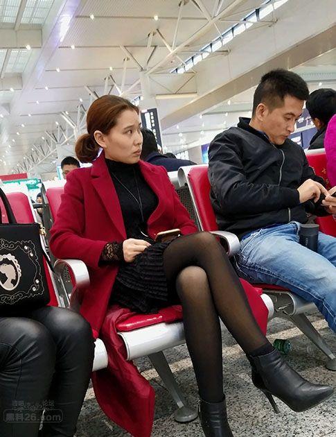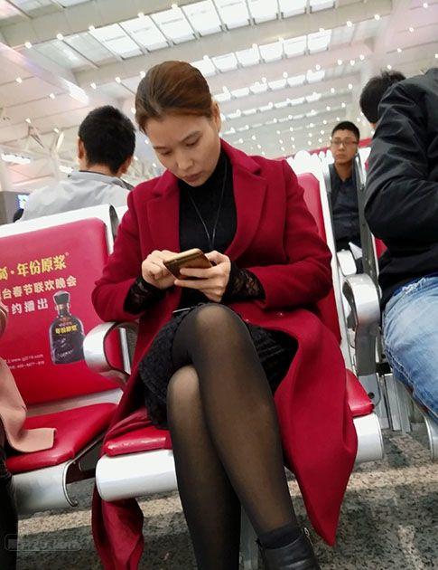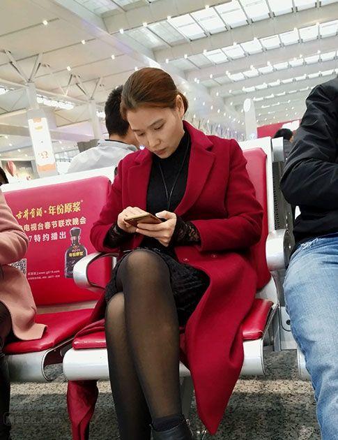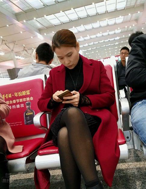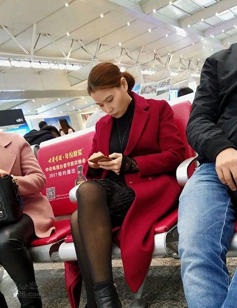 候车大厅里等待列车的漂亮小少妇气质绝佳黑丝诱人【16P】