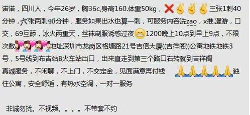 【寻欢时间】:2018年6月18日端午节联系成功 【寻欢地点】:广东深圳 【信息来源】:亲身体验 【服务项目】:鸳鸯浴,漫游,胸推,69式,冰火,口活,爱爱 【妹妹数量】:1 【环境设备】:公寓 【营业时间】:10点-22点 【价格一览】:300/次或600/2次 【安全评估】:85 【服务星级】:★★★ 【重点推荐】: 【联系方式】:[unfree]qq:3101281597[/unfree] 【寻欢细节】:四川妹子,目测不到30,自己住的公寓,QQ联系约好时间,遥控上楼。进了房间先洗澡,上来妹子先舔在口,活还可以,没有齿敢,口完带上雨衣开干,妹子各种姿势都能配合服务十分不错,各位狼友可以尝试一下 【附带照片】: 【验证截图】: